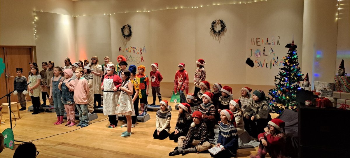 4.bekkur bauð nemendum á yngsta stigi upp á glæsilega leiksýningu í morgun þegar þau fluttu leikritið ,,Jól í Ævintýraskógi" í Tónbergi. Þar mátti sjá mörgum þekktum og skemmtilegum sögupersónum bregða fyrir og fóru krakkarnir á kostum í söng og leik. Foreldrum var síðan boðið að koma og sjá sýninguna seinna um daginn þannig að það er nóg að gera í leikhúslífinu í 4.bekk.